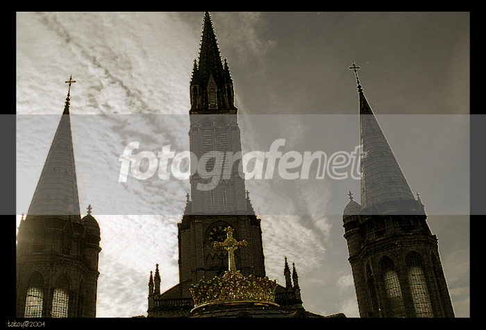 Foto ini diambil ditengah cuaca sangat mendung di LOURDES, idenya utk mengabadikan kondisi langit dan atap gereja ditengah kegelapan langin, olah PS sedikit utk memperjelas struktur bangunan gereja, warna langitnya tetap....merci pour tous les comments.....