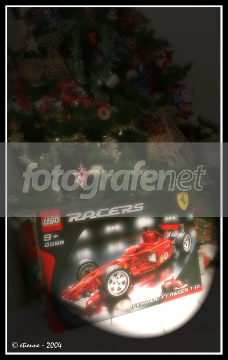 <p>Date Time Original: 2004:12:24 01:47:57rnISO Speed Ratings: 160rn<p>Jaman dulu, tiap Natal orang tua suka kasih cerita ttg Santa n bagaimana dia kasih hadiah ke kita. [dengan taruh rumput, stoking dsbnya]rnKita tahu cerita itu hanya takhayul belaka , tapi sangat menarik untuk diterapkan. rn<p>Semakin umur bertambah, tidak ada lagi Santa .. seperti kata Michael Buble : rn<p>rnDo you remember me<Br>rnI sat upon your kneernI wrote to you<Br>rnWith childhood fantasiesrnWell, I'm all grown up nowrnAnd still need help somehowrnI'm not a childrnBut my heart still can dreamrn<p>Well . I try to light up my Christmas spirit this year by buying myself a Ferarri F1 :)rn1:10 scale model by Legorn<p>Image postprocessed with B+W Soft focus filter, and Spot light filter fxrn<p><font color="red">Merry Christmas 2004</font>&<font color="green">Happy New Year 2005 </font>buat semua member FN yang merayakan.