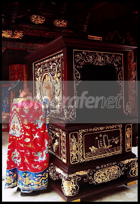 Komposisi foto nya terlalu ke samping, Mas... Coba geser ke kiri lagi dan ambil close-up, sehingga detil ukiran nya meja sembahyang nya lebih ter capture...