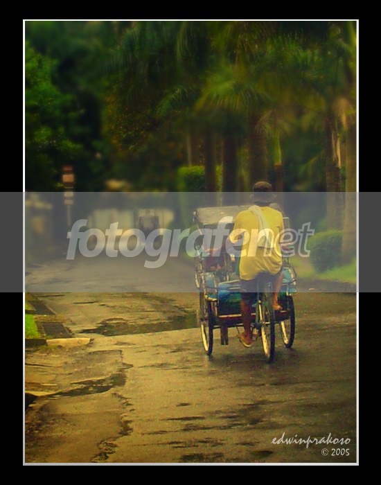 Biar baru aja ujan reda, masih gerimis, abang2 becak ini udah pada 'narik' lagi.