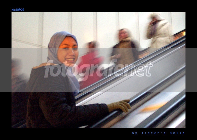 Di suruh kakak moto dia di eskalator U-Bhan...gak pake flash spy dp efek gerak kayak panning gitu de..tp, gak ngerti, ini termasuk panning bukan ya..eniwei, gak tau knapa de daku suka ngeliat poto ini...gara2 senyum kakakku yg gonjreng itu kali ya ihikhikhik...trus jg suka ngeliat org2 yg pd kabur dibelakangnya hehehe...Itu komen dari diri saya sendiri lho...kalo teman2 bgm? All comments are welcome :)