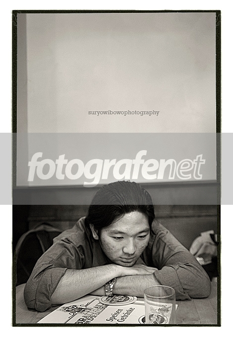 potret seorang teman. dipotret di satu restoran brewery lightingnya avaiable light doank.