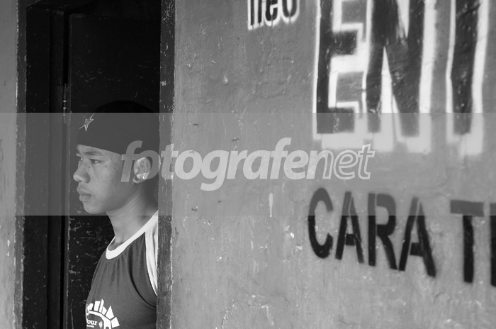 Pembantu Umum yang tugasnya mengikat rakit atau sepeda air, mengisi bahan bakar untuk mesin speed boat dan macam-macam pekerjaan kecilrnrnrnGambar diambil setelah dia selesai bekerja; topinya benar-benar leftish; baret a'la Che dengan hiasan bintang merah, T shirt modis, dan kuping yang ditindik oleh kawannyarnrnrnSeri sebelumnya berjudul The Gang dan Pet ugas AdministrasirnrnrnNama dari masing-masing orang tidak disebutkan; supaya senada dengan tokoh-tokoh dalam cerita-cerita Iwan SimatupangrnrnrnDibuat BW di PS, komen ditunggurnrnrnDate Time Original: 2005:02:26 14:07:01rnrnISO Speed Ratings: 400