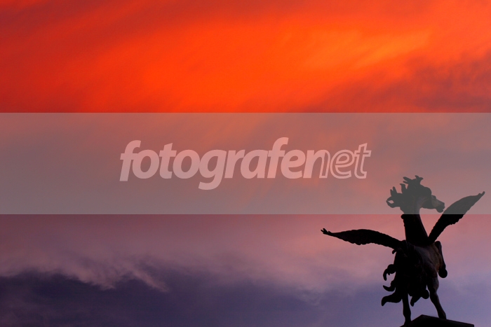 Date Time Original: 2005:03:11 18:17:34rnISO Speed Ratings: 100rnPada saat sunset/ langit begitu indah membara, yang paling mendebarkan adalah apakah kita bisa mendapatkan F/G yang cukup bercerita kalau dipadukan dengan awan/ langit yang indah tersebut. Foto ini diperoleh dengan memadukan patung kuda yang cukup tinggi posisinya (deket rumah) dengan sunset yang muerah...PS u levelling, selective colour dan saturation...