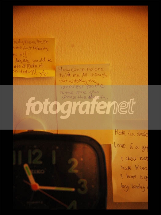 Ide awalnya sederhana banget (iya, Bi? atau gw aja yang sok tau?) Tapi eksekusinya bikin foto ini jadi ga sekadar foto gito.. (jadinya punya sesuatu..) U're right...truth hurts.. (berima pula..:P) Oh yah Bi, jamnya agak menganggu..tapi kalo ga ada jam, jadinya kosong yah? hm..