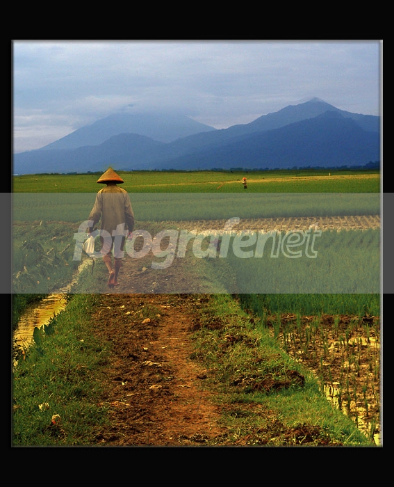 Komposisi perlu perbaikan dikit yaitu horizon agak miring, Kemudian bagian 1/3 bawah tidak perlu diikutkan, mungkin lebih sip lagi. Karena latar belakang sawah dan gunung+langit lebih eye-catching. Warnanya alami. Salam.