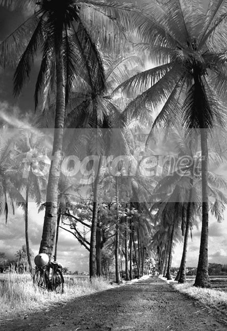 Komposisi jajaran pohon kelapanya asyik, apalagi ada sepeda di bawahnya yang memperkuat komposisi. Tone B/Wnya juga mantab.