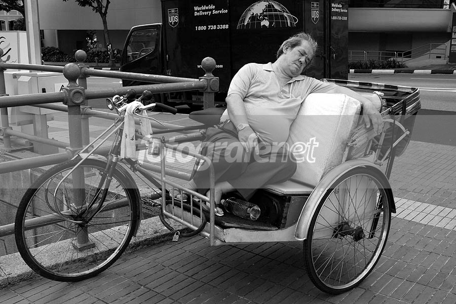 Untung tukang becaknya sopan, gak minta duit kalo dijepret... ;) Nice shot! Nice BW. Salaam!