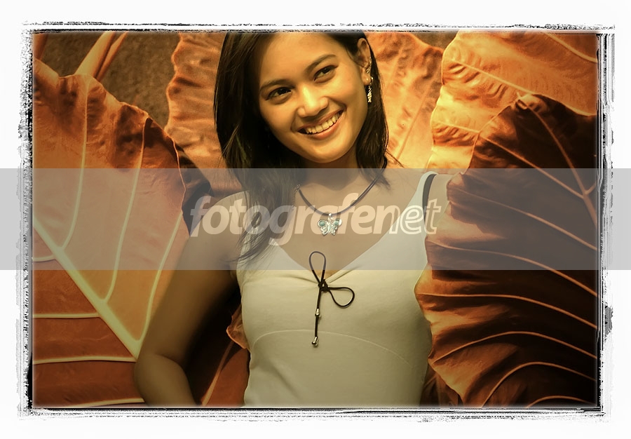 dahsyat sekali ....! pola dan warna daun manis memframe model ... modelnya ekspresif, dan yang jelas cantik abis! salam, eki