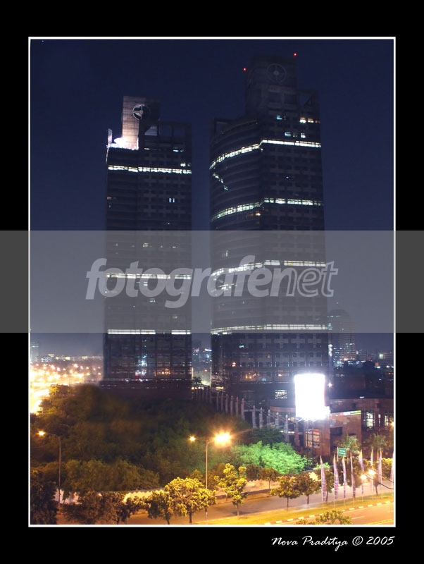Selain yg putih gede over itu (ngga dihapus sekalian aja di PS kayak yg kiri?), fotonya cantik, bener2 mirip WTC ya, smoga nasibnya jangan mirip...angle yg bagus, kira2 diambil dr mana ya? night shot yg berhasil, efek lampu malamnya bener2 kuat...salam!