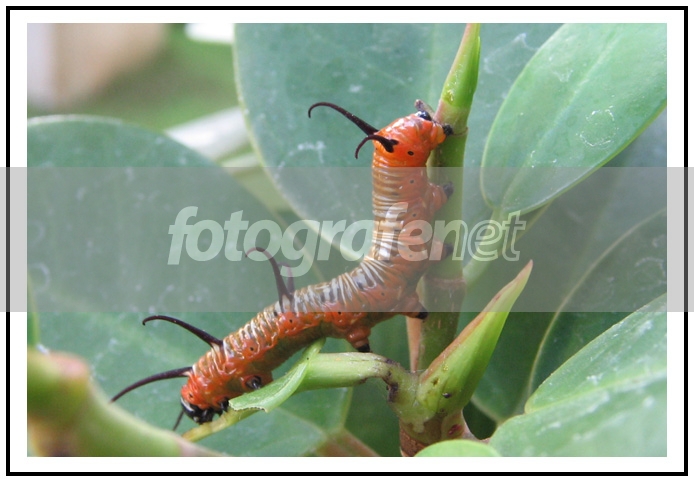 Nyoba makro lagi, ulat daun di taman sendiri. Cuman nggak bisa bikin fokus hanya ke ulat-nya, jadi daun-daunnya gak bisa burem, gimana ya ?rnPS cuman cropping dikit dan frame.... Mohon kritikannya, thanks!rnDate Time Original: 2005:07:10 07:48:28