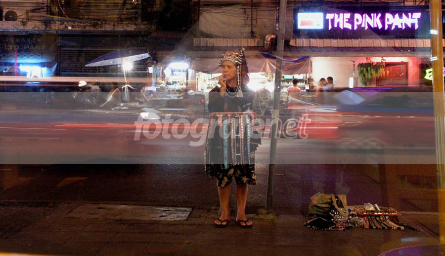 taken in bangkok, i was sitting in starbucks having coffee, and she was standing outside selling her stuff