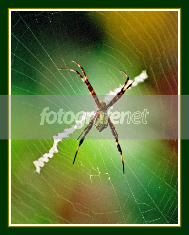 Argyope sp. Komposisi dan warna bagus. Agak kurang tajam dan grainy. Foto ini dibalik karena biasa laba-laba bergantung terbalik.