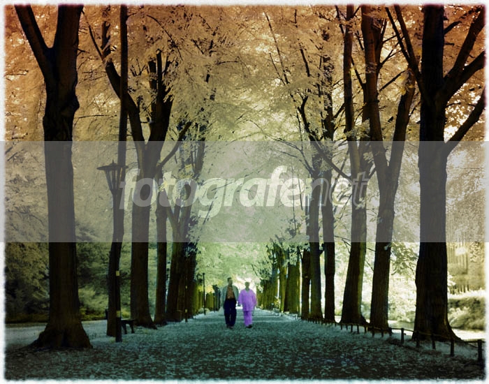 Love the background, love the colour of the leaves, but wouldn't it be better if the people in the picture walking away from you? might be much better.