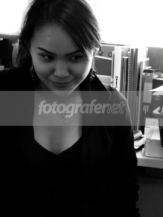 lightingnya yg kurang pas nih... sepertinya memaksakan adanya buku2 di BG sedangkan sinar dari belakang... sudut lain mgkn lebih bagus... ditunggu... salam