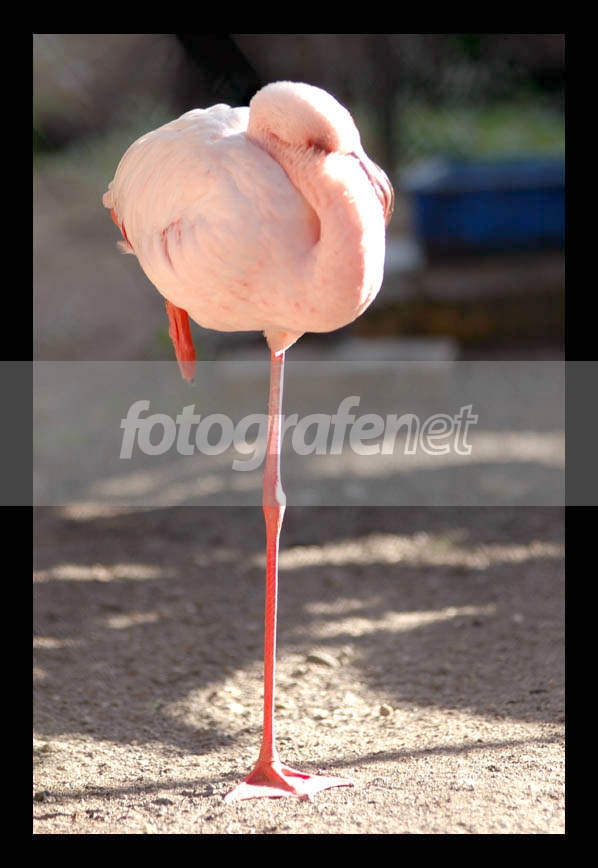 seekor flamingo merah muda sedang tidur dengan satu kaki