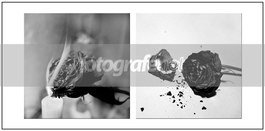 Nice concept Stella. Bagian kiri bagus & moment pas, bagian kanan over-contrast IMHO. Sayang bunga rose dibakar begitu...? Salam