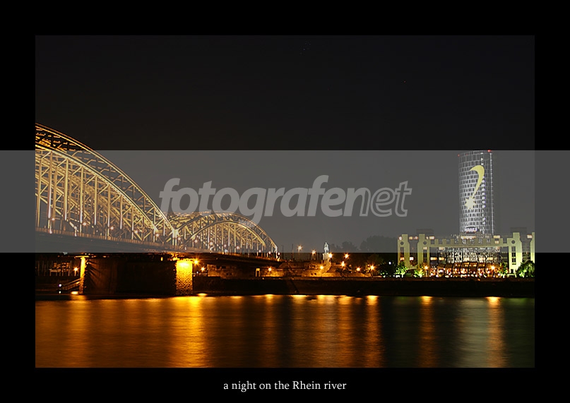 Date Time Original: 2005:08:19 01:32:23 rnISO Speed Ratings: 100rnrndiambil dari atas kapal Waffen von Mainz, kapal tempat saya bermalam waktu Weltjugendtag (World Youth Day) 2005 di Köln, Agustus kemarin. Karena diambil diatas kapal, jadinya ya goyang-2, walau sudah pakai tripod.rnrnTU apa TD terserah deh, posting demi kenangan WJT kok :)rnrnInfo Tambahan: di bagian kiri foto itu jembatan yang konon terkenal dibombardir habis waktu WW II. Di bagian kanan foto itu towernya Hotel Hyatt (nggak promosi wek :P), dan ada komet kuning bagian dari logo WJT2005 (liat di wjt2005.de)