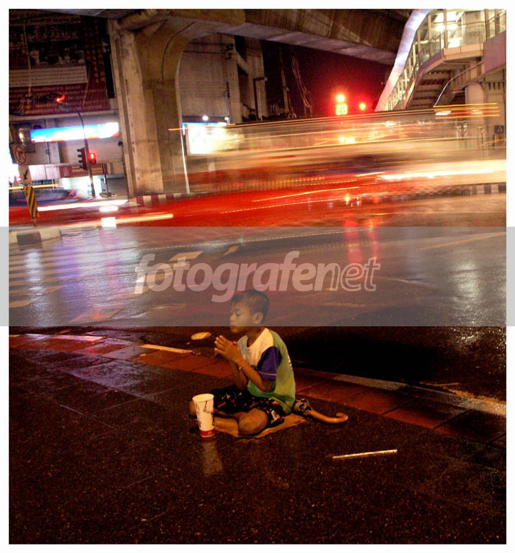 Taken in bangkok, this kid was waiting outside a temple, it was raining.