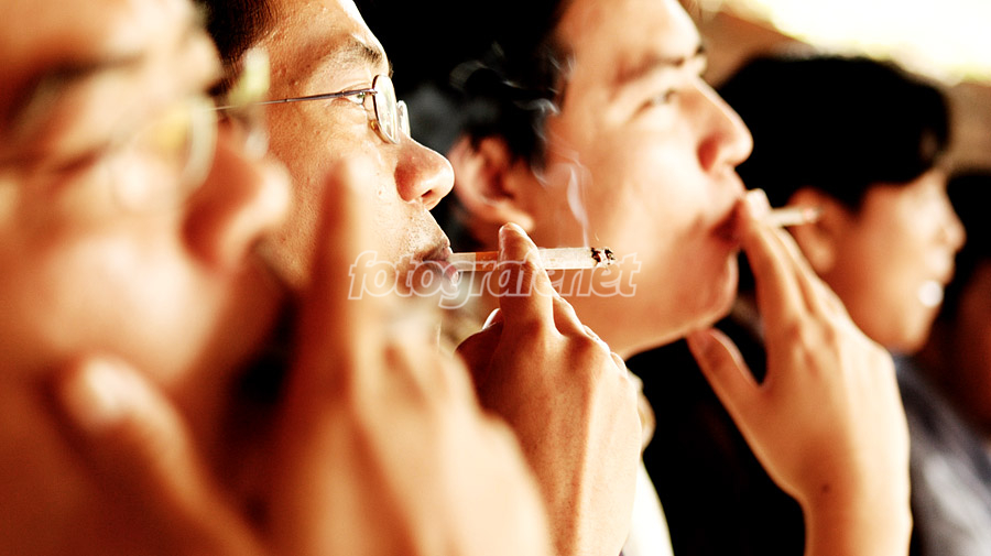 dikompakin Djisamsoe semua neh ? hihihihi.... orang yg keempat kok diem-2 aja *rokoknya nggak keliatan*, kehabisan rokok ya ? DOFnya manis, momentnya pas, aspek-2 rokok ada semua... hihihi... termasuk asepnya :D