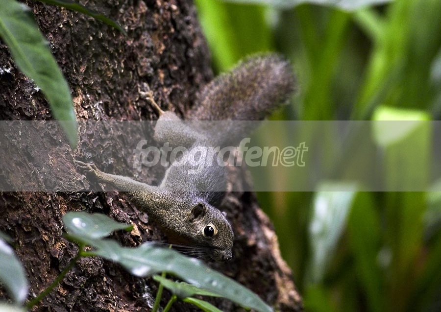 Callosciurus notatus, Plantain Squirrel, bajing kelapa. (Bajing termasuk O. Rodentia seperti tikus, sedangkan Tupai itu sebetulnya masuk family yg lain, O. Scandentia). Nice catch! Satwa ini lincah dan genit, butuh kesabaran untuk mendapatkan fotonya di "alam". Daun di FG agak menutupi tapi OK.
