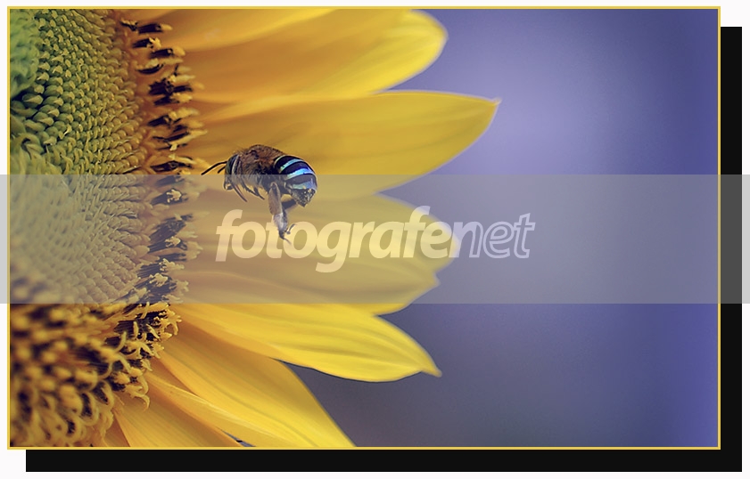 No comment deh.. Pingin bgt motret lebah terbang, ini pas dapet lagi di bunga matahari, dengan BG biru. 9 TU kayaknya (3 utk tiap elemen). :D