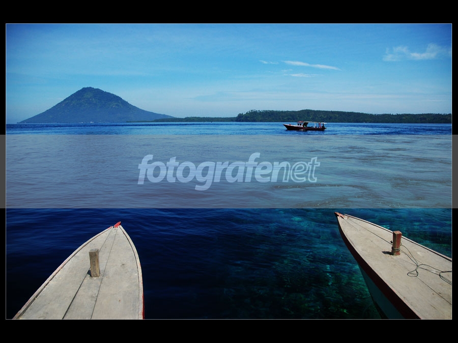 dua ujung perahu di fg dimata saya agak mengganggu. saya coba hilangkan dari pemandangan rasanya lebih enak, perahu jauh, cakrawala dan gunung saja. just an opinion, gheeting!