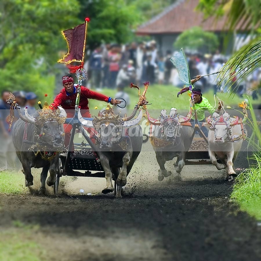 Nice captured. Suka sama ekspresi bapak yang dikanan dan tumbuhan di kanan juga menambah sempit jalur pacuan mereka. Jadinya kelihatan lebih seru lagi. Tapi menurut saya blur untuk background-nya terlalu keras dan kerjaannya juga kurang rapi (IMHO). Gimana kalo cuma di gelapkan sedikit dengan curves bg-nya? Still a great shot.