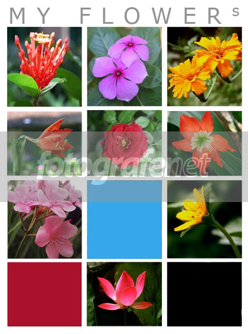 Nice.. kolase yg menarik Warnanya bagus Sayang kenapa tiga kotak itu kosong.. akan lebih OK kalau semua bersi foto bunga -IMSL