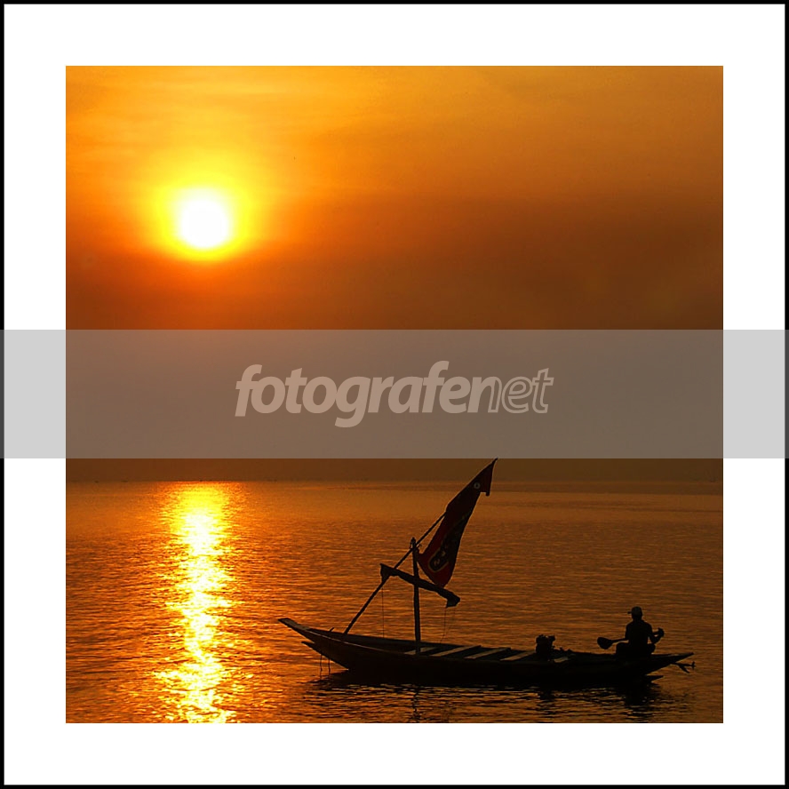 momentnya pas sekali nih! posisi refleksi matahari bersebelahan dengan sampannya.. dahsyat dah! siluetnya juga keren salam
