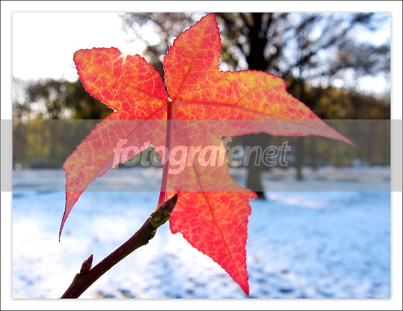 Maksud dan idenya menarik, tp efek fotonya kurang berhasil, imho... Efeknya malah blocking, plus bertumpuk dgn winter landscape di belakang... Mungkin karena skalanya, untuk tampil sbg object utama tidak harus sebesar ini, kecilkan dikit mungkin, high angle misalnya supaya latar lebih 'rata', BWkan latar kalau perlu, sisakan cuma warna oranye daun...sekedar saran, salam!