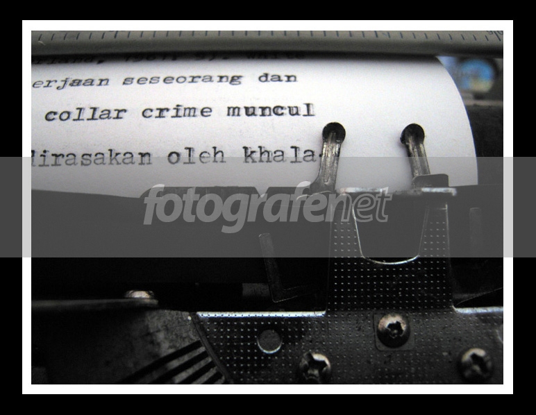 sama, saya juga suka ! =) angle dan cahaya pas, komponya sip ! satu yg paling ganggu kesannya 'berpose' banget, baikan ujung "printer"nya pas ditengah kata yg mau diketik.