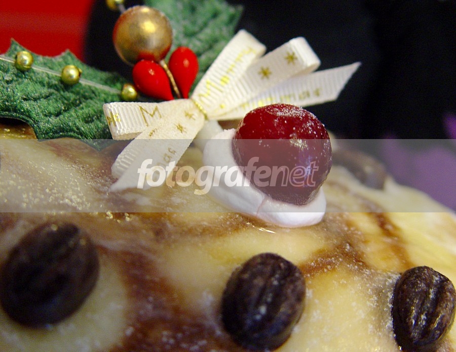Buah cherry di atas ice cake.