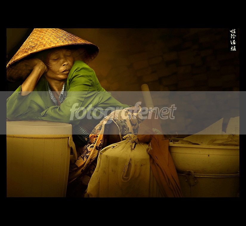 Berbahagialah Anda yg bisa tidur kapanpun, dimanapun dan dlm kondisi apapun. Termasuk Ibu pedagang makanan ini yg saat lelah tinggal memejamkan mata saja.
