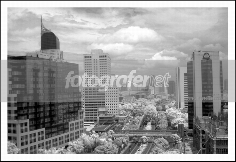 Memotret pemandangan jalan sudirman dan sekitarnya dgn bantuan filter IR dan saya rubah ke greyscale...