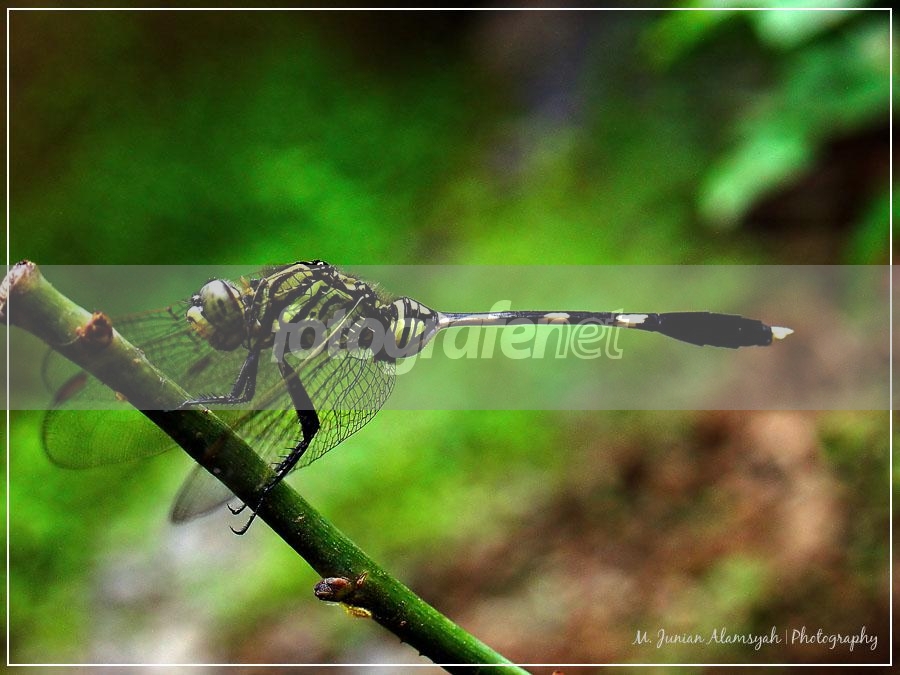 asli deh keren banget nih capungnya... sayapnya yg ke bawah jadi bikin kesan kl capungnya pas mendarat dgn sempurna. trus yg plg keren dari foto ini: DOF yg sempurna & tone hijau yg bener2 menyejukkan mata salam