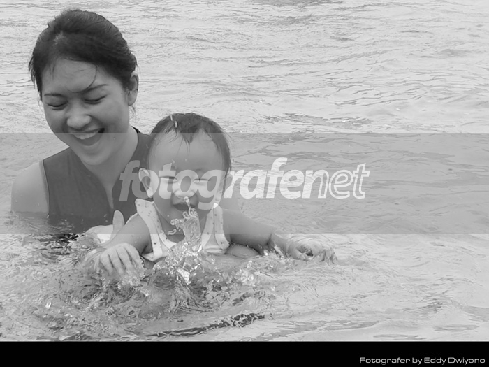 melihat sang anak sedang menepuk-nepuk air maka keluarlah ide-nya.karena difoto siang hari jadi saya pakai dimungkinkan memakai slow shuter speed.dan cipratan air bisa tercapture dengan baik.nternyata hasil object ekspresi orangnya pun bagus..mohon petunjuk...