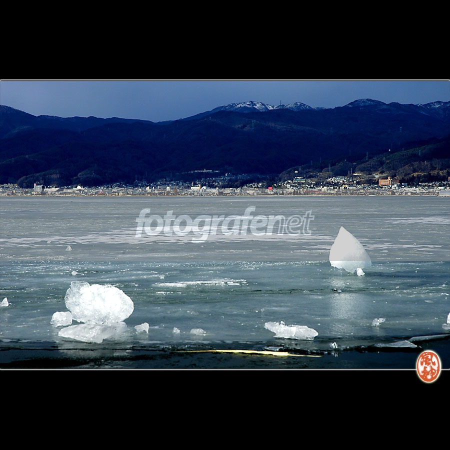 Gods' Path #3rnSuwa Lake, Yamanashi Prefecture, JapanrnrnKomposisi ini mengingatkan saya akan kesederhanaan taman Zen di kuil Ryoanji (Peaceful Dragon), Kyoto. Di taman kuil itu ada 14 buah batu yang tertata pada pasir putih, dan sangat terkenal keseluruh dunia karena filosofi Zen yang dikandungnya. Tetapi saya sendiri sama sekali tidak paham akan makna komposisi batu-batu disana. rnrnKawan-kawan saya ada yang menginginkan komposisi "jejak dewata" (gods' path/omiwatari) yang lebih proporsional daripada menghadirkan kemegahan langit yang dominan atau BG perkotaan disisi danau yang wah...rnKomposisi ini mungkin bisa menjawab keingintahuan rekan-rekan bahwa saya juga memiliki sense yang sama dengan mereka. Saya percaya, bahwa "kepala" yang banyak akan menghadirkan obyektifitas yang lebih hakiki, daripada subyektifitas saya yang sempit.rnrnAtau..rnMungkin foto ini tidak bermakna sama sekali (persis seperti perasaan saya ketika melihat taman di kuil Ryoanji). Tetapi sekarang saya yakin ada perasaan yang lain memaknai fenomena alam ini, yang (katanya) "jejak dewata" ini hanya hadir setelah menunggu waktu 20 Tahun lebih. Di kuil Ryoanji filosofinya ada pada "ruang" antara bebatuan yang membentuk komposisi, dan kehadiran saya disini hanya tepat pada "waktu" setelah saya melewati 4 musim dingin di negeri matahari terbit ini. Kesimpulannya, saya tidak butuh waktu 20 tahun untuk melihat keajaiban fenomena alam ini.... fufufufufufufu... :)