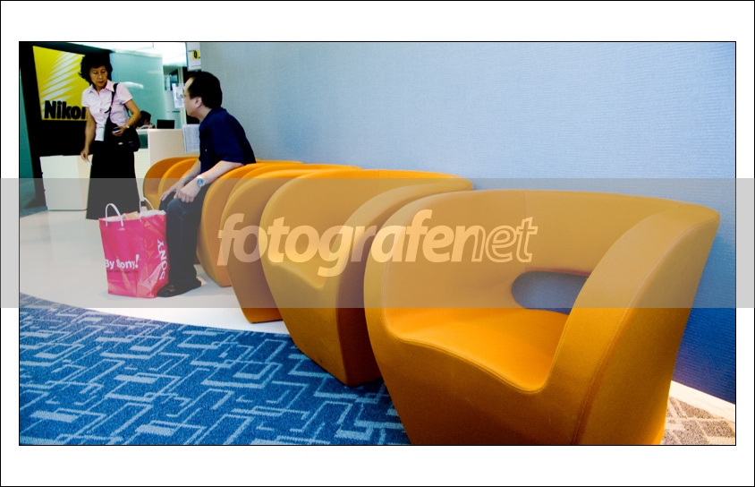 Warna warninya kuat banget.. yang jelas anglenya bikin perpektif yang bagus.. kursinya unik juga yach.. Ini kantor NIKON ? salam salut