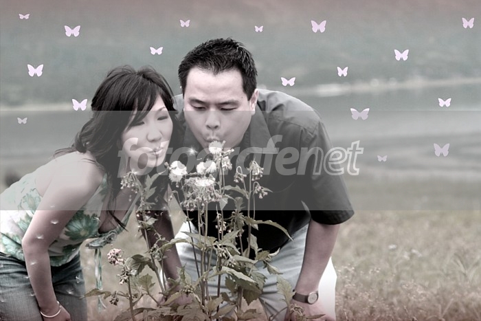 Ini lucu lagi fotonya. Kupu-kupunya juga cantik, nggak norak kok. Memang style nya aja yang begini. Hanya anglenya kalo bisa lebih kesamping sedikit, soalnya si cowo kelihatannya malah lagi nyedot kembangnya :D Sama muka si cowo terlalu tegang.