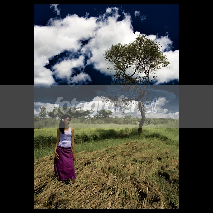 indah sekali... komposisi orang dan pohon... tone langit... alur batang padi dan rumput... satu kesatuan yang indah... salam