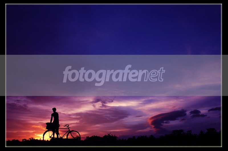 tone colournya cakep, komposisinya mantap, penempatan obyek manusia bersepeda di antara matahari tenggelam bikin mantab siluetnya salam