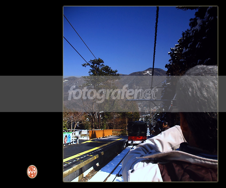 Foto untuk melengkapi "Daimonji Series".rnrnSebenarnya sudah mau pulang dari pemotretan, menunggu cable car yang datang. Bapak ini asyik sekali mencoba komposisi pemotretan dengan kamera digital poketnya. Ya sudah... saya snap saja dia. rnrnSecara cepat saya memasukkan unsur-unsur lansekap yang ada (termasuk Daimonji), cable car yang datang, salju yang masih ada di-areal rel, pokoknya nano-nano...rnrnSnap dengan komposisi sederhana ini mungkin tidak bermakna, tetapi bagi saya... Disinilah saya terjatuh karena black ice dan menemukan inti teknik "MH" saya. Saya akan berusaha memperdalamnya lagi...Kaizen... in search of excellence...!!