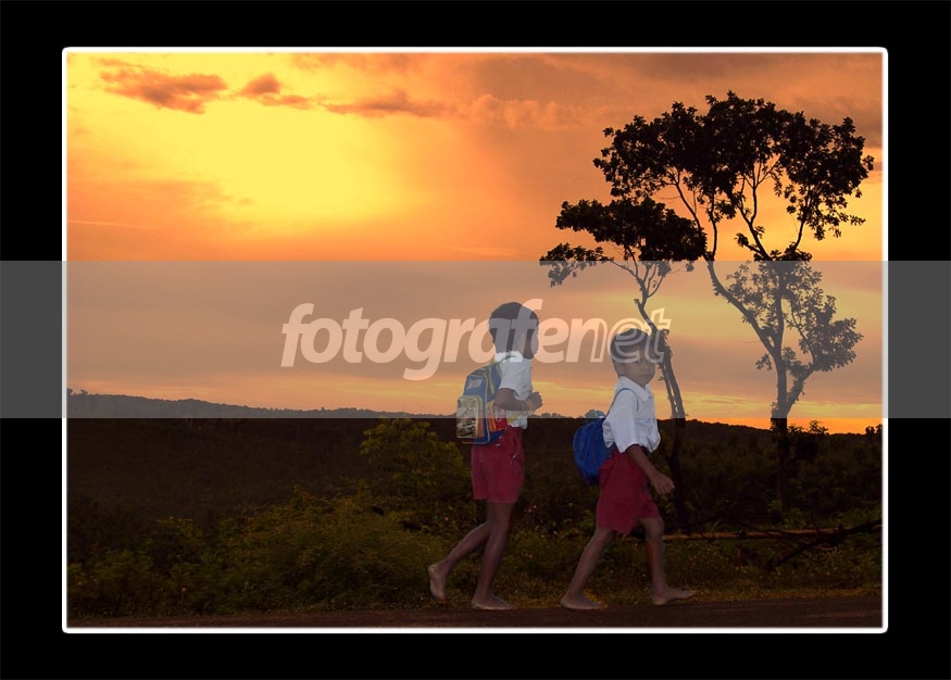 Anak2 di Desa Bago, Kec Kradenan, Grobogan kalau berangkat sekolah harus naik turun bukit, melintasi hutan jati (seringkali harus berangkat sebelum matahari terbit). Lokasinya cukup tinggi dan menanjak(sebagai gambaran, motor RX King saya harus gigi 1 ). Masih banyak yang tidak memakai sepatu. Diatas semua itu patut diacungi jempol adalah semangat mereka untuk menuntut ilmu.