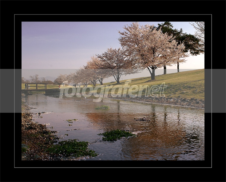 Deretan sakura yang manis.. dengan sudut pengambilan yang menapakan perpekstif.. refleksinya nampak walau air mengalir.. salut