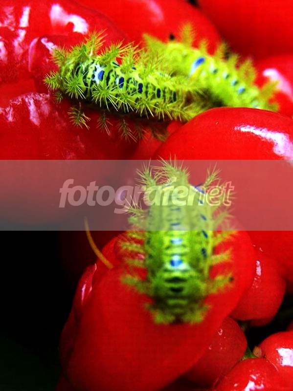 Masih dengan "Ulat Monster". Setelah tersengat kala mereka masih di daun, gak salah dong kalo ditransfer ke Jambu, jadi model dadakan, kontras sih warnanya....nnKritik, tetep......