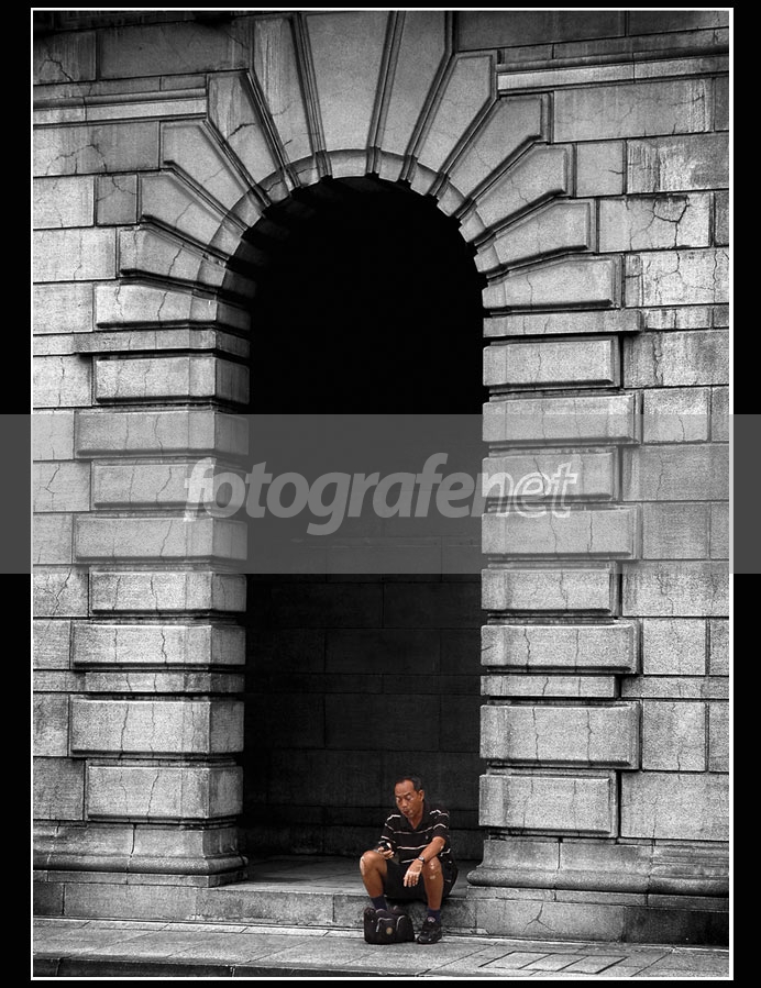 nice framing... komposisinya OK pemilihan yg pas, kontras dengan antara gerbang yg BW dan si bapak kemiringan objek kenapa ga di koreksi di PS, biar lebih mantab nice pic salam