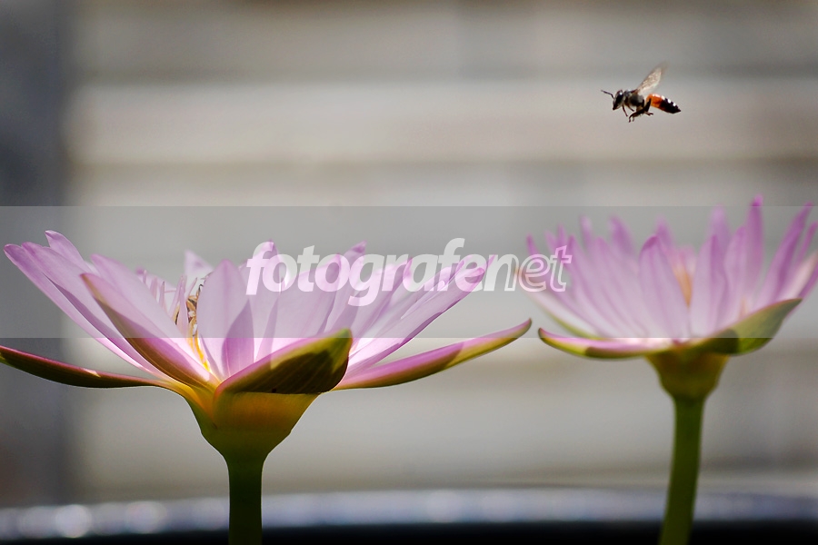 cantik momennya... IMHO akan lebih cakep bila lebahnya lebih dekat dan lebih tajam.. nampaknya focus nya jatuh di kembang kiri yah... salam macro