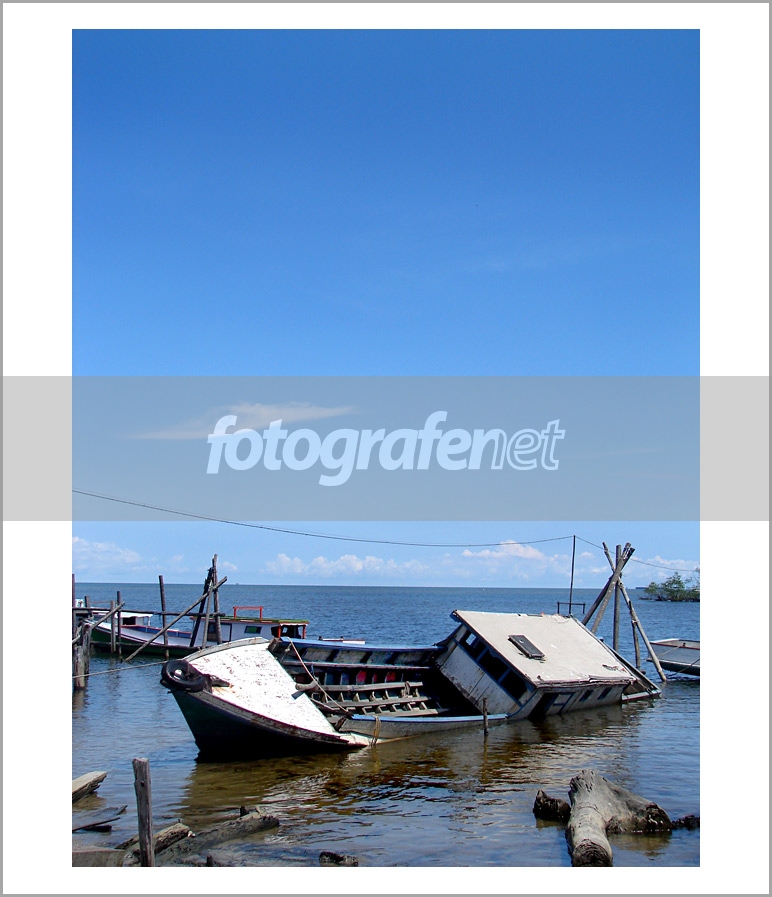 Great shot! Kontras banget yaa... alam yg indah dengan perahu yg hampir tenggelam, realita kehidupan! Tonenya cantik! Salam