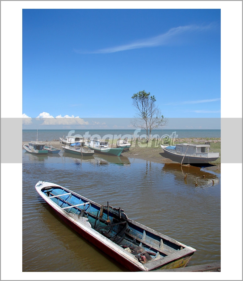 Komposisinya Pas Banget, Warnanya juga sempurna antara langit, awan, laut dan, coklatnya aliran sungai ... btw, fotonya di muara sungai ya ?